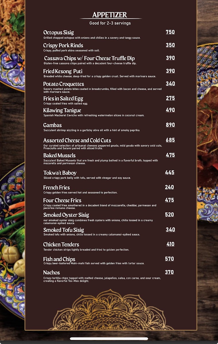 Each dish is crafted with fresh, locally sourced ingredients, ensuring every bite is bursting with flavor. The ambiance of the restaurant complements the menu perfectly, with a laid-back and welcoming atmosphere that makes it a great spot for both casual meals and special occasions. If you’re looking to explore the rich flavors of the Philippines, the Myons Cuisine Menu is a must-try for any food lover.