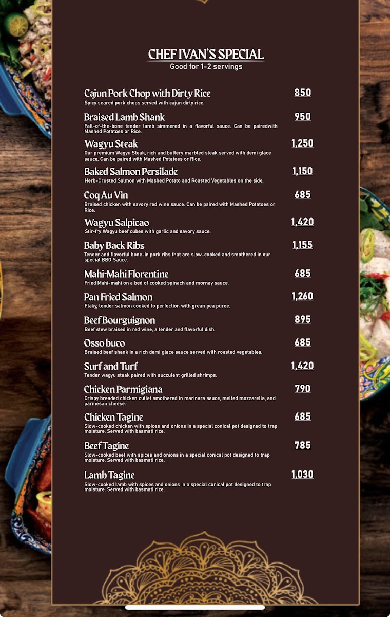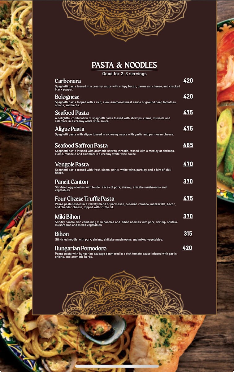 The Myons Cuisine Menu offers a delightful mix of flavors that reflect the vibrant spirit of Filipino cuisine with a modern twist. Located on Mayon St, in the heart of Santa Mesa Heights, Quezon City, the restaurant brings together a variety of dishes that cater to all kinds of cravings. Whether you’re in the mood for savory grilled meats, hearty stews, or fresh salads, there’s something for everyone to enjoy. You’ll find classics like sizzling sisig and adobo, but also a few surprises that will make your taste buds dance.